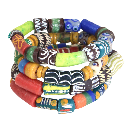 This Ghana Trade Bead Bracelet is a colorful and vibrant accessory, handmade from colored glass beads. Each bracelet features a unique pattern, making every piece one-of-a-kind. The elastic band ensures a comfortable fit for any wrist size, making it easy to wear. These beads are not just decorative; they carry the rich history of Ghana, where they were once used as currency. By wearing this bracelet, you’re embracing a piece of Ghana’s artistic heritage and adding a statement piece to your collection.